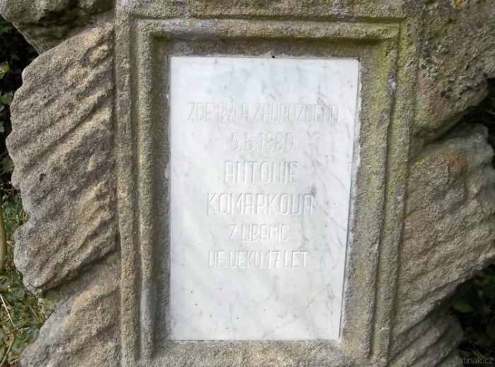 Tři Bubny skrývají v tichosti malého remízku místo velice smutné – pomník s nápisem „Zde byla zavražděna 5. 6. 1880 Antonie Komárková z Libanic ve věku 17 let“. Více o tomto neblahém skutku vypráví veršovaná tzv. žalostná píseň neznámého autora. Formou kramářské písně vypráví, jak na místě dnes stojícího pomníku přepadl a zavraždil František Ryšavý ze Zaječic pro peníze nevinnou sedmnáctiletou dívku Antonii, vracející se z trhu v Chrudimi do Libanic ke svým pěstounům, manželům Zitkovým. Krásná, bohatými havraními copy obdařená byla Antonie:1